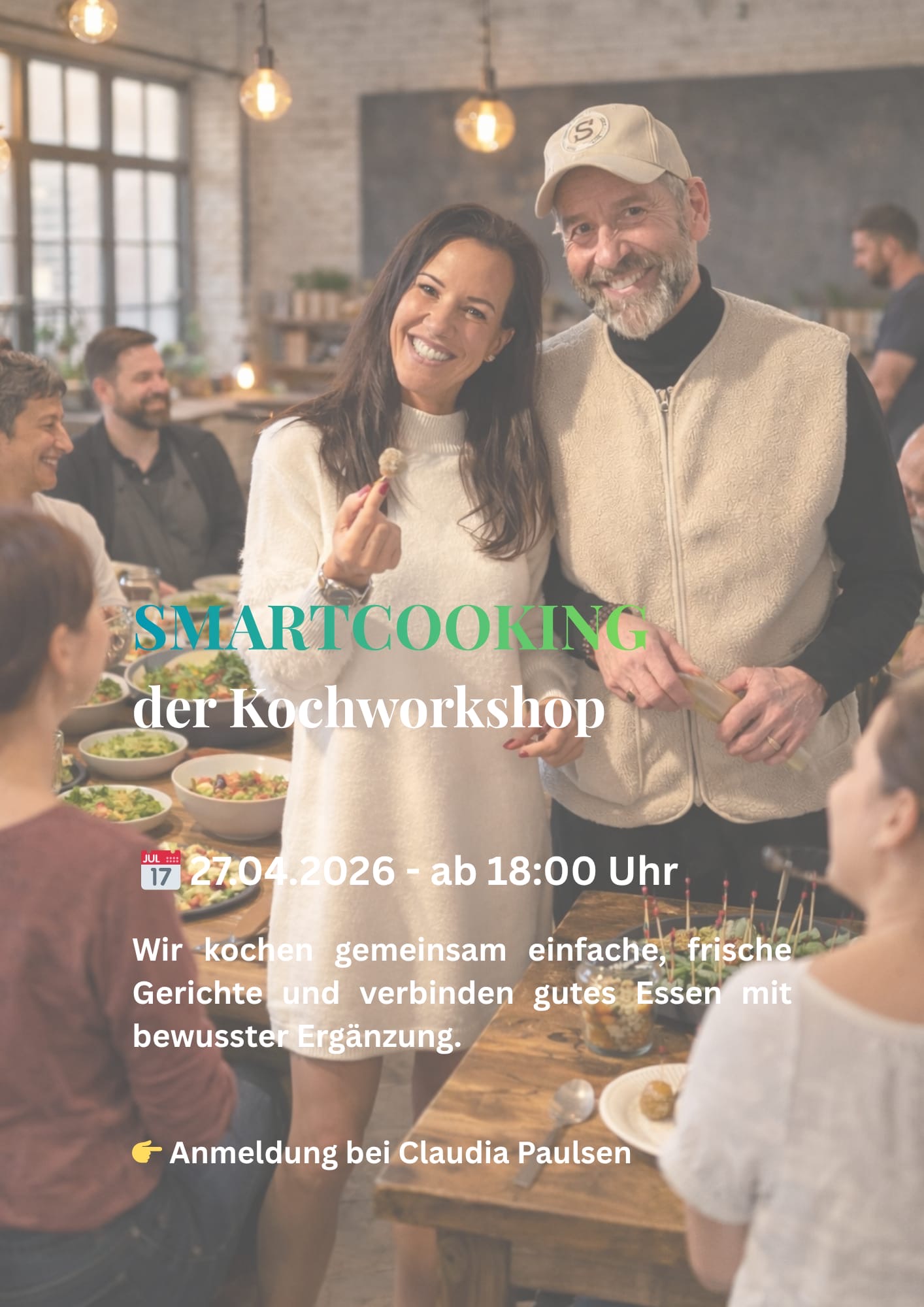 In entspannter Atmosphäre kochen wir in der Gruppe und verbinden Genuss mit Wissen: Du lernst, wie du Nahrungsergänzungsmittel ganz unkompliziert in deine Ernährung integrieren kannst – alltagstauglich, durchdacht und ohne Verzicht.